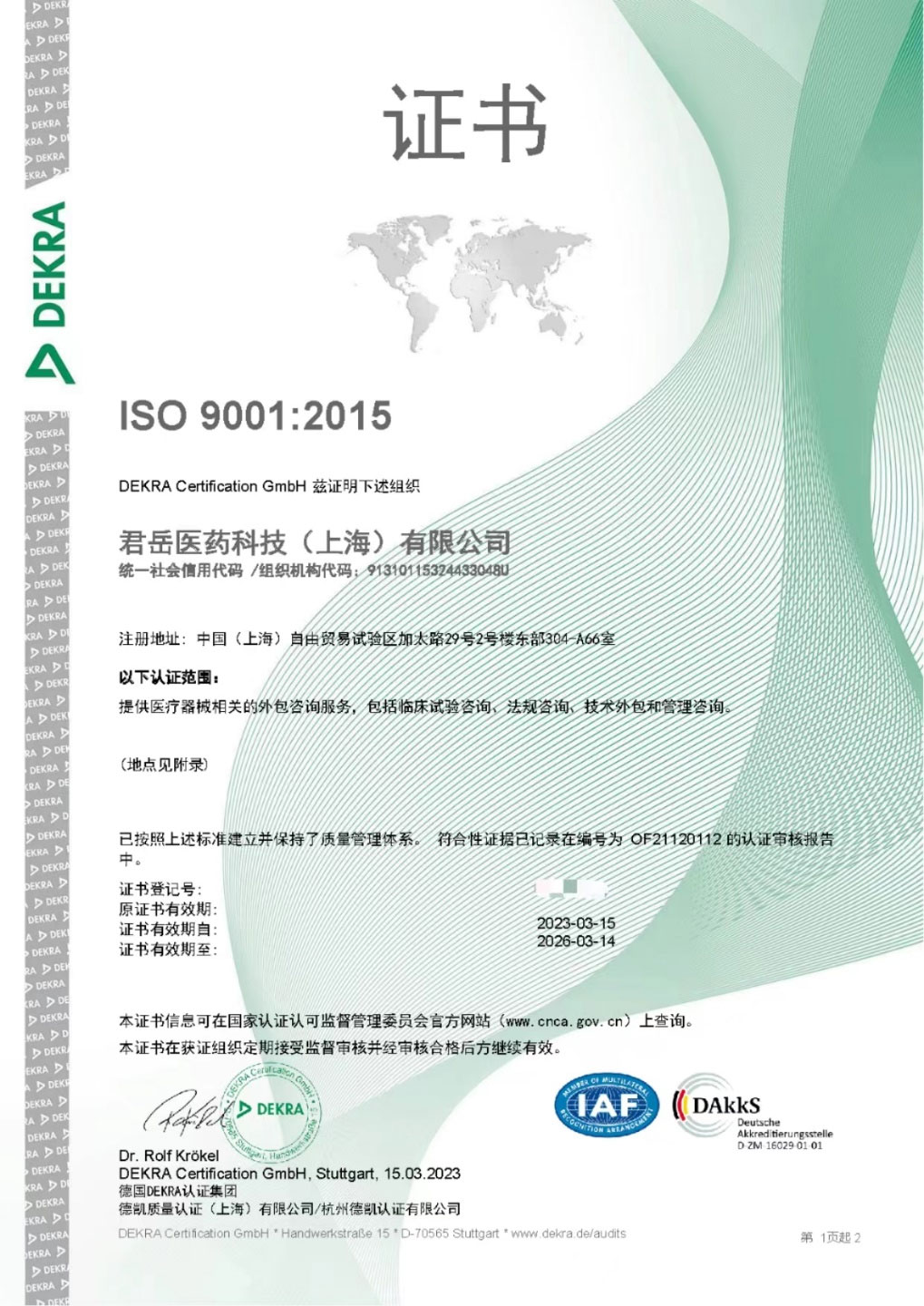 君岳医药科技(上海)有限公司,是一家专注于医疗器械科技(即医疗器械,体外诊断和AI科技)领域的临床研究服务机构(CRO)。2015年成立至今,已为多家国内外知名器械科技公司提供了专业的临床研究服务。在心血管介入、神经介入、肿瘤、呼吸介入、人工智能、机器人、骨科、口腔、皮肤科等治疗领域的均有着丰富的临床试验项目经验,且与众多临床研究中心及研究者保持着长期紧密的合作关系。