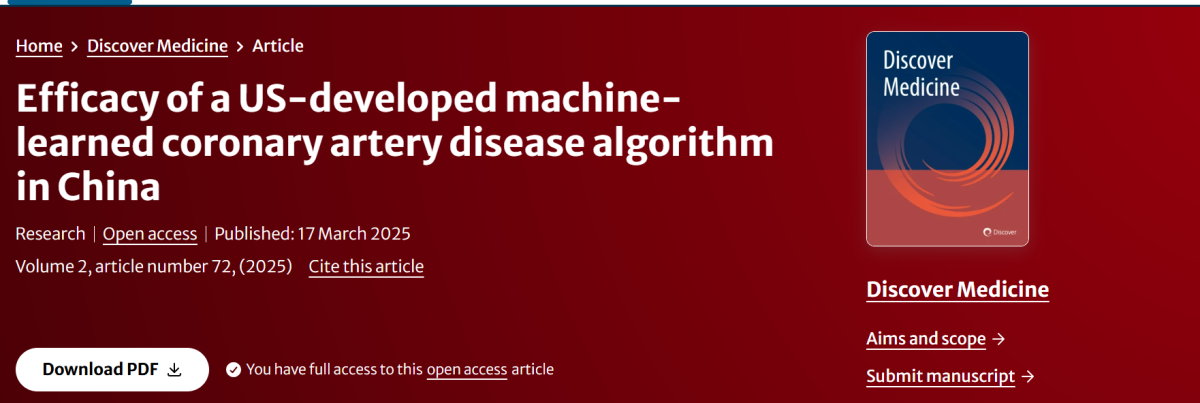 March 2025 – A landmark study validating the Analytics for Life (A4L) non-invasive coronary artery disease (CAD) detection system for mainland Chinese populations was published in Discover Medicine by Professor Qian Juying’s team at Zhongshan Hospital, Fudan University. As the core clinical research partner for this Sino-US collaborative project, CCRC Medtech provided pivotal support in cross-population efficacy validation through its end-to-end clinical capabilities and medical-engineering integration expertise.